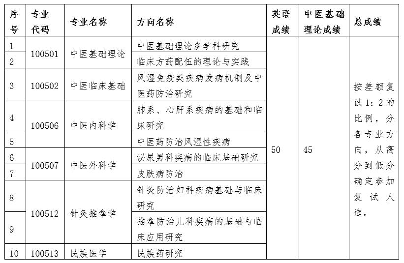 根据《关于做好2021年招收攻读博士学位研究生的通知》(教学司〔2021〕6号)、《云南中医药大学2021年全日制博士研究生招生复试录取办法》等文件精神,经学校研究生招生领导小组研究决定,我校2021年博士研究生进入复试的初试成绩基本要求为: