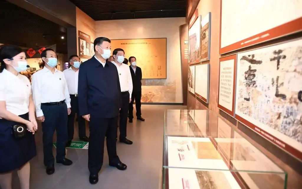 2020年9月16日,习近平在郴州市汝城县文明瑶族乡沙洲瑶族村“半条被子的温暖”专题陈列馆,了解当地开展红色教育情况。(新华社记者 谢环驰 摄)